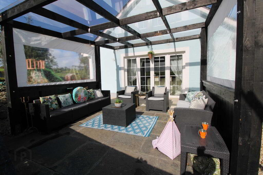 REA Eoin Dillon are proud to introduce you to this truly wonderful family home in a prime location which will appeal to many. This property exudes quality and elegance with wonderfully high ceilings throughout and is sure to be of enormous interest to those seeking a distinctive family home in an exclusive and most convenient location. On entering the property there is a welcoming reception hall with a tiled floor. A bright and airy living room with laminate wood flooring and solid fuel stove features a large window and vaulted ceiling with exposed beams. This room connects you to the kitchen/dining room which has a tiled floor, a full range of eye and base level units, island unit, Silestone counter tops and splashbacks and double doors to a patio area allowing an abundance of natural light into this area. There is a utility room off the kitchen with a tiled floor, fitted units and is plumbed for washing machine and dryer. There is five bedrooms in this property all with laminate wood flooring, three featuring built in wardrobes. The main bedroom has sliderobes, walk-in-wardrobe and an en-suite bathroom featuring a rolltop bath. The fifth bedroom is currently being used as a second living room. The family bathroom is fully tiled and features a wet room, W.C. and W.H.B. This property has the benefit of a loft/store accessible by a spiral staircase which has laminate wood flooring. The jewel in the crown of this special property is the well maintained gardens providing for an abundance of colour and scent, a haven of peace, tranquility and privacy offering an ideal entertainment space for family gatherings or just a retreat after a busy day. This property has the added advantage of a detached old stone building with two store rooms and the main area has been coverted into a bar/pool room featuring a tiled floor, exposed beams, seating area and a toilet. This would also make an ideal home office. With expansive front and rear gardens set on 0.67 acres and generously proportioned versatile living accommodation this cleverly designed house is finished to an exceptionally high standard and boasts a B3 energy rating. Viewing highly recommended. Video tour available on request.